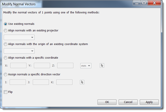 | Use existing normals | Leaves the normal vectors as they are on each selected point. It is useful in conjunction with the flip checkbox. |