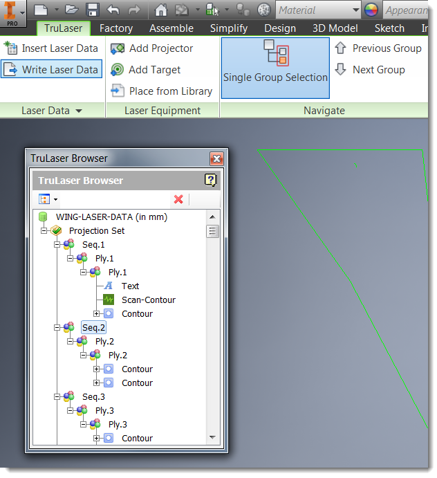 Single Group Selection simulates the laser projection by only showing one group of laser data at a time. The first group shown is the first group of laser data displayed by the laser projector.