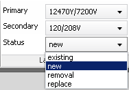 The Primary Voltage, Secondary Voltage, and Status values apply to features created manually, automatically, or by import.