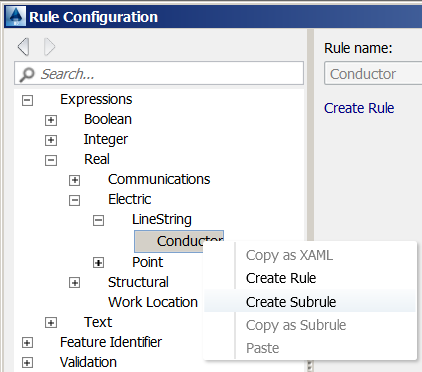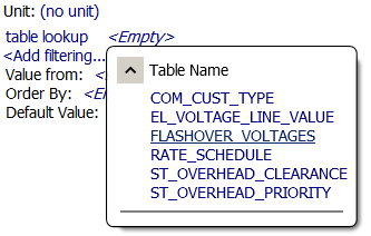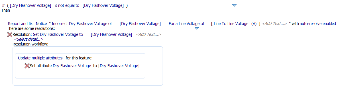 Use Table Configuration to set up tables of values. Then, create rules that look up values from the tables. This sample procedure creates a subrule to set Dry Flashover Voltage based on a conductor's Nominal Line Voltage. You can then create a validation rule with a resolution that looks up Nominal Line Voltage and sets the appropriate Dry Flashover Voltage. Adapt this procedure as needed.