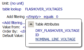 Empty and then click the table column containing the value of interest. In this example we use Dry_Flashover_Voltage.