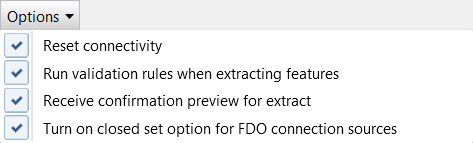 - To include contained features during extract and merge, even if they do not fall within the specified geometric filter, select Options