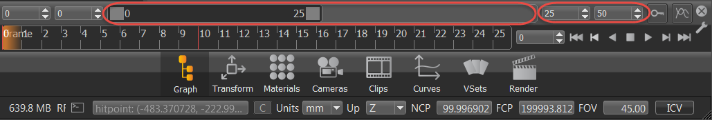 To change the range of frames displayed, drag the slider that is above the Timeline. You can also enter values in the boxes beside the slider.