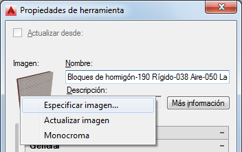 4. En la hoja de trabajo Propiedades de herramienta, pulse con el botón derecho en el icono existente y elija Especificar imagen.