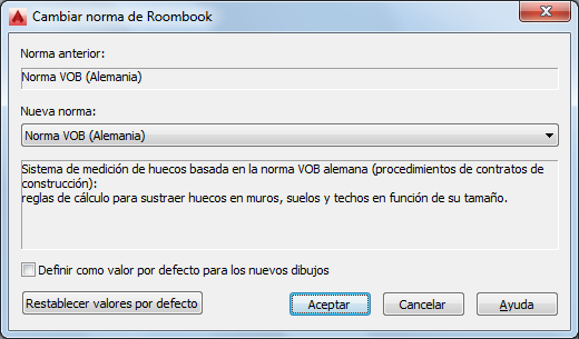 - Cancele con No cuando no desee cambiar la norma, sino conservar la anterior. Todos los cálculos realizados previamente con Roombook y los ajustes manuales permanecen sin cambios.