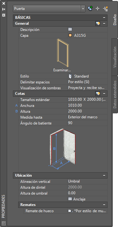 - Ficha de la cinta de opciones específica de objetos (contextual): cuando selecciona un objeto, se muestra una ficha específica del objeto en la cinta de opciones. Por ejemplo, cuando selecciona una puerta, se muestra la ficha Puerta. La ficha específica de objetos contiene comandos aplicables al objeto seleccionado.
