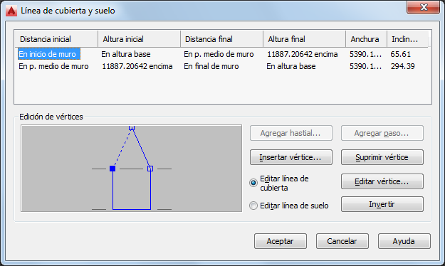 La tabla de la parte superior del cuadro de diálogo muestra información sobre todos los vértices del muro cortina. También puede seleccionar el vértice que desea editar en la lista.