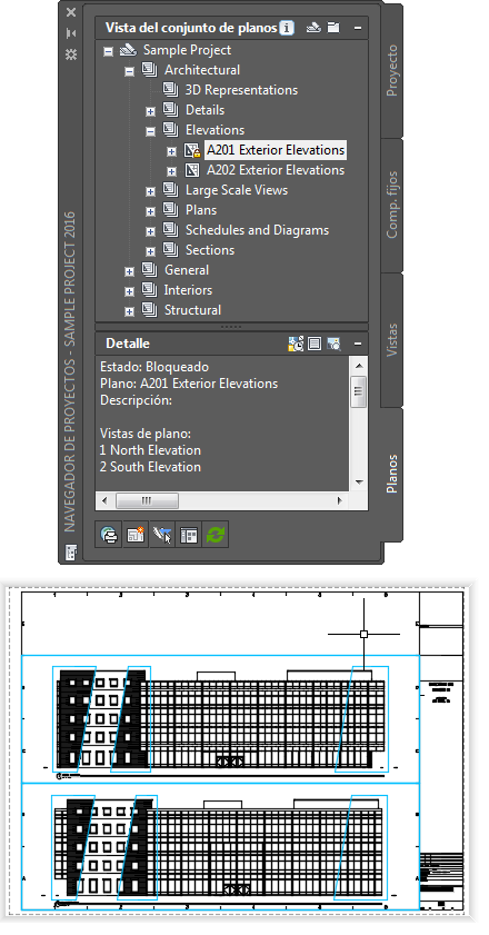 Todos los proyectos de AutoCAD Architecture tienen un conjunto de planos de proyecto simple, que contiene todos los planos del proyecto.