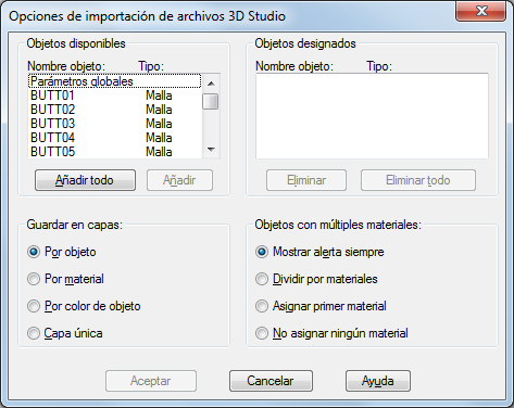 Crea una capa para cada objeto en el archivo 3D Studio y sitúa el objeto en esa capa. El nombre de la capa es el mismo que el nombre del objeto.