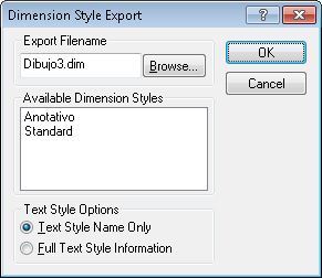 Exporta los estilos de cota guardados y sus parámetros a un archivo externo.