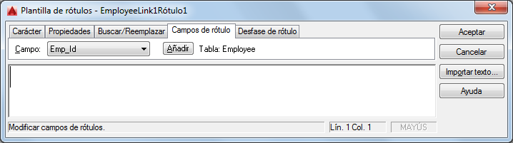 Añade al rótulo el campo seleccionado en la lista Campo.