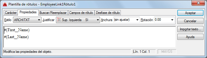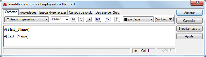 Aplica un estilo de texto al rótulo. El estilo actual se guarda en la variable de sistema TEXTSTYLE. El formato de carácter para el tipo de letra, la altura y los atributos negrita y cursiva se ignora si se aplica un estilo nuevo a una plantilla de rótulo ya existente. Los atributos de apilación, subrayado y color se mantienen en los caracteres en los que se aplica un nuevo estilo. No se aplican estilos con efectos cabeza abajo o hacia la izquierda. Si se aplica un estilo definido con un efecto vertical a un tipo de letra SHX, el texto se muestra en sentido horizontal en el cuadro de diálogo Plantilla de rótulos.