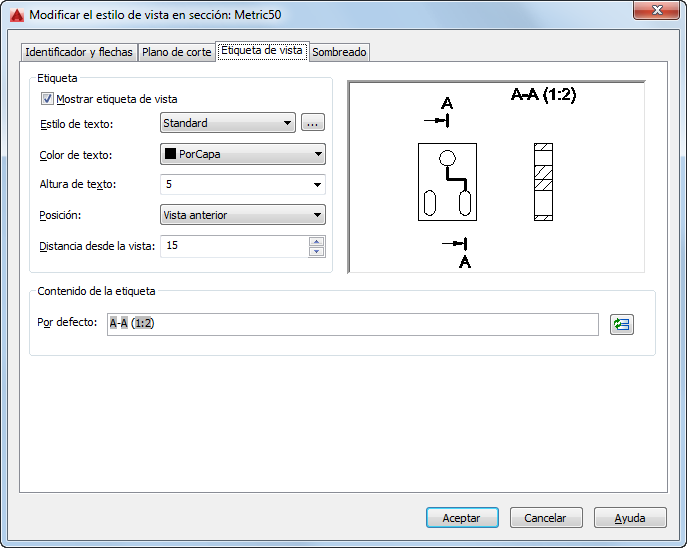 - Define la posición de la etiqueta de vista en sección en relación a la vista en sección.