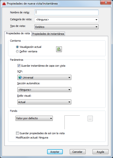Cuadro de diálogo Propiedades de nueva vista/instantánea