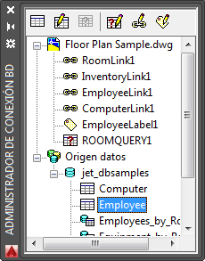 Contiene nodos para todos los dibujos actualmente abiertos, así como un nodo Origen de datos que incluye todos los orígenes de datos disponibles configurados en el sistema.