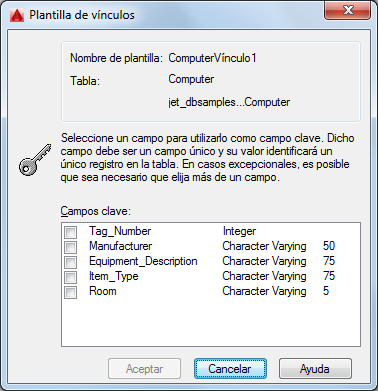 Atención: Seleccionar un gran número de campos clave pueden afectar negativamente al rendimiento de la opción Selección de vínculos y de otras operaciones de conectividad.