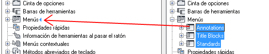En el panel izquierdo, haga clic en el signo más (+) situado junto a un nodo de elementos de interfaz para expandirlo. Expanda el nodo correspondiente del panel derecho.