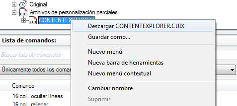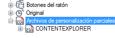 Los archivos CUIx parciales cargados en el archivo CUIx principal se muestran bajo el nodo Archivos de personalización parciales.