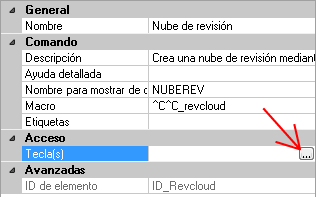 - En el panel Propiedades, haga clic en el cuadro Tecla(s) y, a continuación, haga clic en el botón […] para abrir el cuadro de diálogo Métodos abreviados.