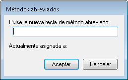 - En el cuadro de diálogo Métodos abreviados, mantenga pulsada la tecla modificadora Ctrl con una combinación de Mayús, Alt o Mayús y Alt junto con la letra, el número, la función o la tecla virtual (por ejemplo F1 o Insertar) que desee.