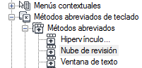 - Haga clic en el signo más (+) situado junto al nodo Métodos abreviados de teclado para expandirlo.