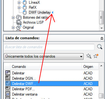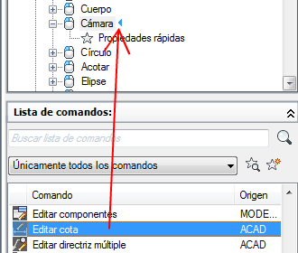 - En el panel Lista de comandos, arrastre el comando que desea añadir a la acción de doble clic en el panel Personalizaciones en <nombre de archivo>.