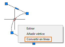 Coloque el cursor sobre el pinzamiento en el punto medio del segmento de línea que desea convertir.