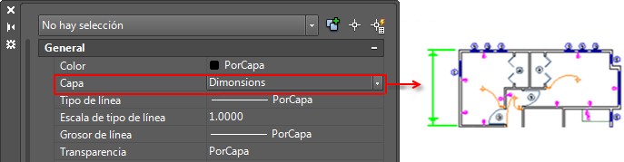 Puede definir algunas de las propiedades de un objeto por capa (PORCAPA) o especificando la propiedad de manera explícita, independientemente de su capa.