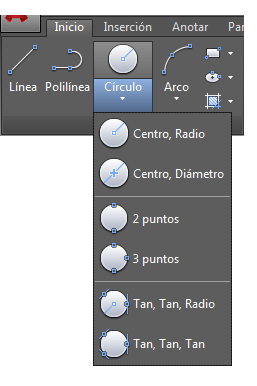 Las otras opciones de círculo están disponibles en el menú desplegable: