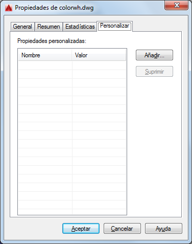 Muestra el cuadro de diálogo Añadir propiedad personalizada, que permite especificar el nombre y el valor de la nueva propiedad personalizada. El nombre debe ser único. El valor puede dejarse vacío.