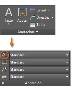 Al igual que otros elementos de anotación, el texto de líneas múltiples proporciona una gran cantidad de parámetros. Puede guardar estos parámetros como un estilo de texto mediante el comando ESTILO y, a continuación, acceder a los estilos de texto haciendo clic en la flecha de la lista desplegable del grupo Anotación. El estilo de texto actual se muestra en la parte superior de la lista desplegable.
