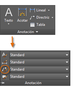 Puede crear sus propios estilos de directriz múltiple desde la lista desplegable del grupo Anotación o introduciendo ESTILDIRECTRIZM en la ventana de comandos.