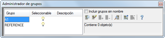 Muestra el cuadro de diálogo Administrador de grupos: Detalles. Este cuadro de diálogo enumera todos los nombres de grupo creados en Grupo. Seleccione un nombre para mostrar el número de objetos del grupo y la descripción del grupo.