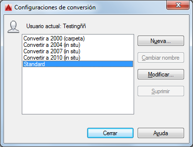 Muestra el cuadro de diálogo Modificar configuración de conversión, que permite especificar las opciones de la conversión de dibujos seleccionada.