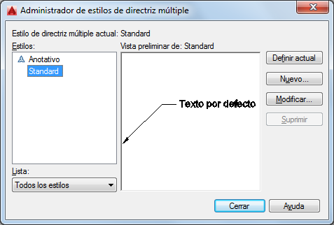 Muestra el nombre del estilo que se va a crear. El estilo por defecto es Standard.