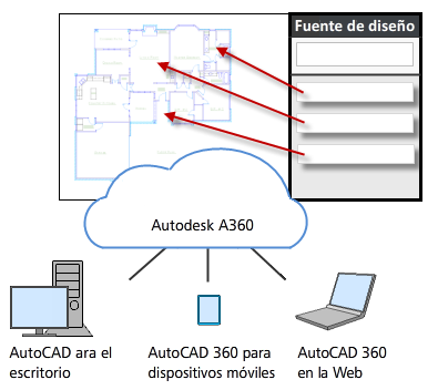 Las entradas de la fuente de diseño están disponibles en un dibujo independientemente de cómo se acceda a ellas: en el escritorio, en la Web o en un dispositivo móvil.