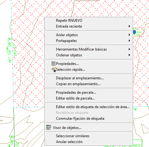 Figura 12: menú contextual de la etiqueta de selección de área de parcela
