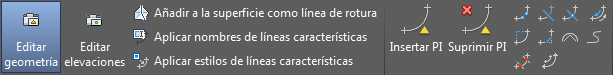 Si bien el comando Alarga de AutoCAD funciona con las líneas características, éstas no se pueden editar con los comandos Parte o Recorta de AutoCAD dado que resultan elementos demasiado complejos. Para solucionar este problema, se han añadido comandos Parte y Recorta específicos de líneas características al Panel Editar geometría de líneas características, tal como se muestra en la figura 2. Los comandos PARTE y RECORTA proporcionan un control preciso sobre las operaciones de edición de líneas características.