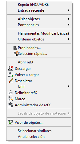 Los datos de refX se resaltan con líneas discontinuas cuando se seleccionan. Los comandos de refX afectan a las etiquetas correspondientes de distintas maneras. Si desenlaza o une la referencia externa, la etiqueta se suprime y es necesario volver a crearla.