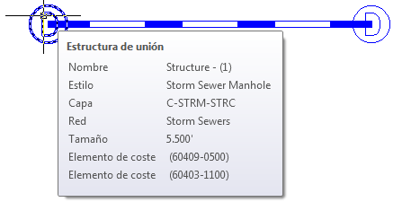 Profundización: repita este procedimiento en las otras estructuras en la red, asignando códigos de elemento de coste adecuados para las embocaduras, las bocas de inspección y los sumideros del cuadrado.