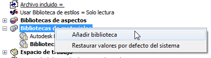 - Haga clic con el botón derecho en el nodo Bibliotecas de materiales y seleccione Añadir biblioteca.
