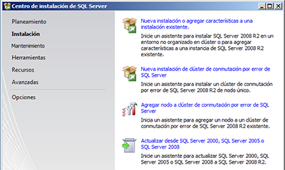 - Seleccione la opción Instalación e inicie el asistente Actualizar desde SQL Server 2000 o SQL Server 2005.