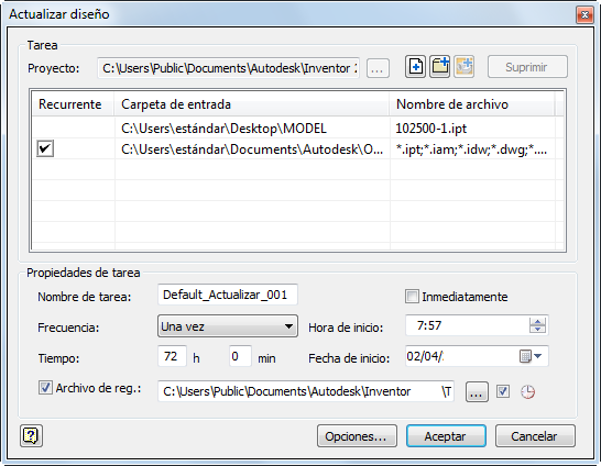 - Autodesk Inventor debe disponer de una autorización del sistema antes de ejecutar el Programador de tareas.