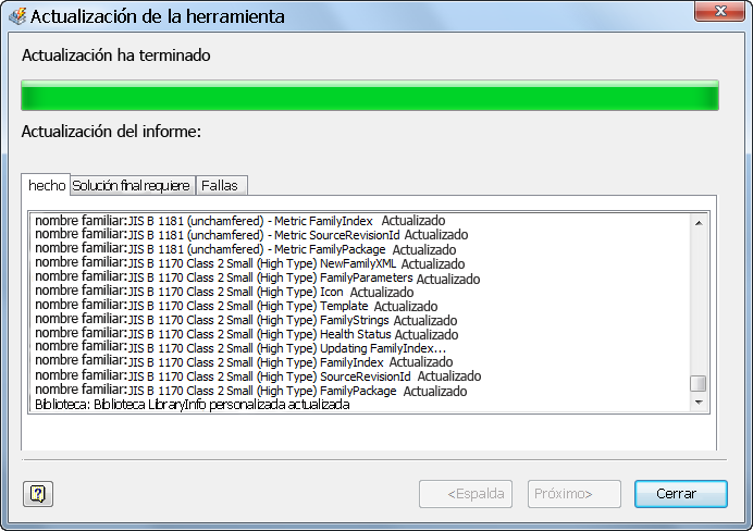 Una vez finalizado el proceso, revise el Informe de actualización, tal como se muestra en la siguiente imagen.
