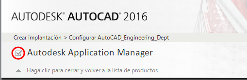 En las instalaciones autónomas, y las implantaciones que no utilicen el flujo de trabajo de creación de implantaciones estándar, debe eliminar un conjunto de instrucciones de instalación de Application Manager del archivo setup.ini (que se encuentra en el directorio \cdrom1) antes de instalar el producto de Autodesk, como se indica a continuación: