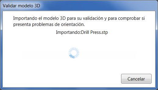 - Se abrirá el cuadro de diálogo Validar modelo 3D, en el que se mostrará el siguiente mensaje mientras el modelo 3D se importa en el layout.