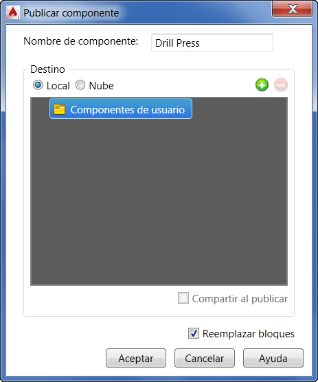 - Deje la casilla de verificación Reemplazar bloques activada si desea reemplazar automáticamente el bloque utilizado para crear el componente por el componente recién publicado.
