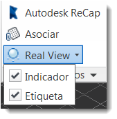 Si la nube de puntos incluye indicadores de vista real y descripciones, se puede activar y desactivar su visualización desde el menú desplegable Real View.
