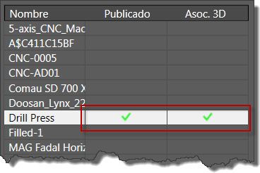 El cuadro de diálogo incluye dos columnas: Publicado y Asoc. 3D. Si se trata de un componente publicado disponible en la biblioteca de componentes, aparece una marca de verificación verde en la columna Publicado. Una marca de verificación en la columna Asoc. 3D indica que un modelo 3D está asociado con este componente 2D.