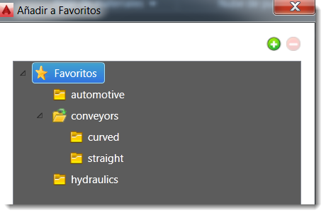 Para añadir una nueva carpeta, haga clic en el signo más de color verde y escriba el nombre de la nueva carpeta. La carpeta se añade al nivel resaltado cuando se hace clic en el signo más. Por ejemplo, para añadir una nueva carpeta de nivel superior, haga clic en Favoritos y, a continuación, haga clic en el signo más. Para crear una carpeta dentro de una carpeta, haga clic en el nombre de la carpeta antes de hacer clic en el signo más.
